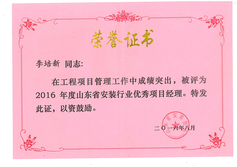 Certificate of honor