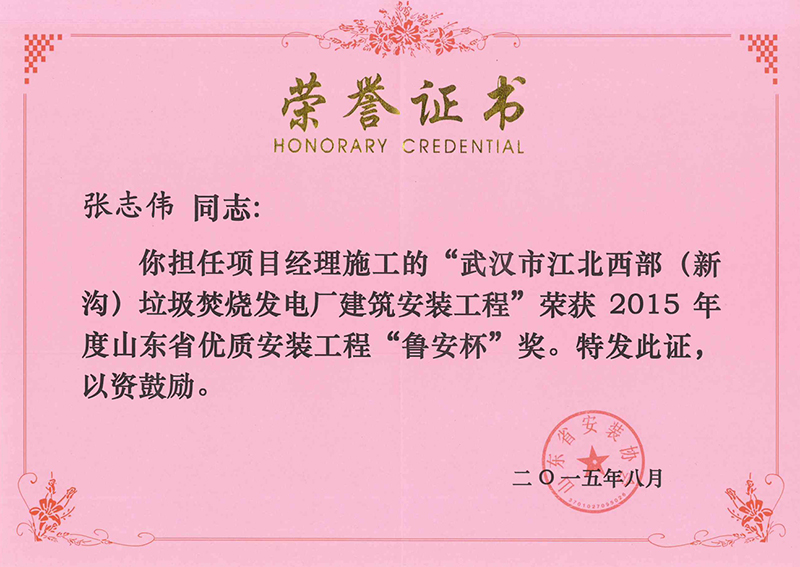 Certificate of honor
