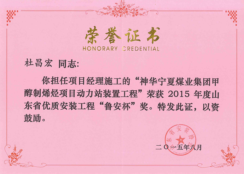 Certificate of honor